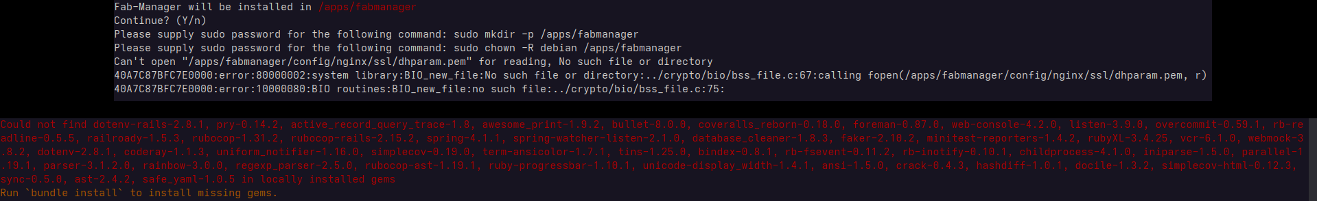 J’ai suivi le guide d’installation « Install Fab-manager in production with docker-compose » pour installer fabmanager sur un vps debian mais j’ai plusieurs erreurs.